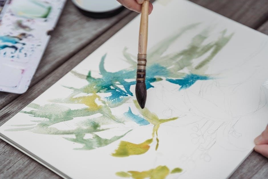 Understanding colour’s properties is vital, and PDF guides detail colour mixing, palette selection, and how these elements interact within watercolour techniques.